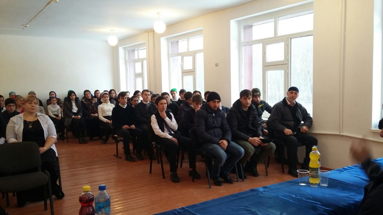 14.01.2017В школе МБОУ "ЦА-ВЕДЕНСКАЯ СРЕДНЯЯ ОБЩЕОБРАЗОВАТЕЛЬНАЯ ШКОЛА №1" 14.01.2017г., организатор ДНВ Ахаев Э.Л. провел беседу с учащимися на тему "Экстремизму-нет!". В своей беседе он уделил внимание на рост экстремизма в молодежной среде. Дал рекомендации при выявлениях случаев экстремизма.