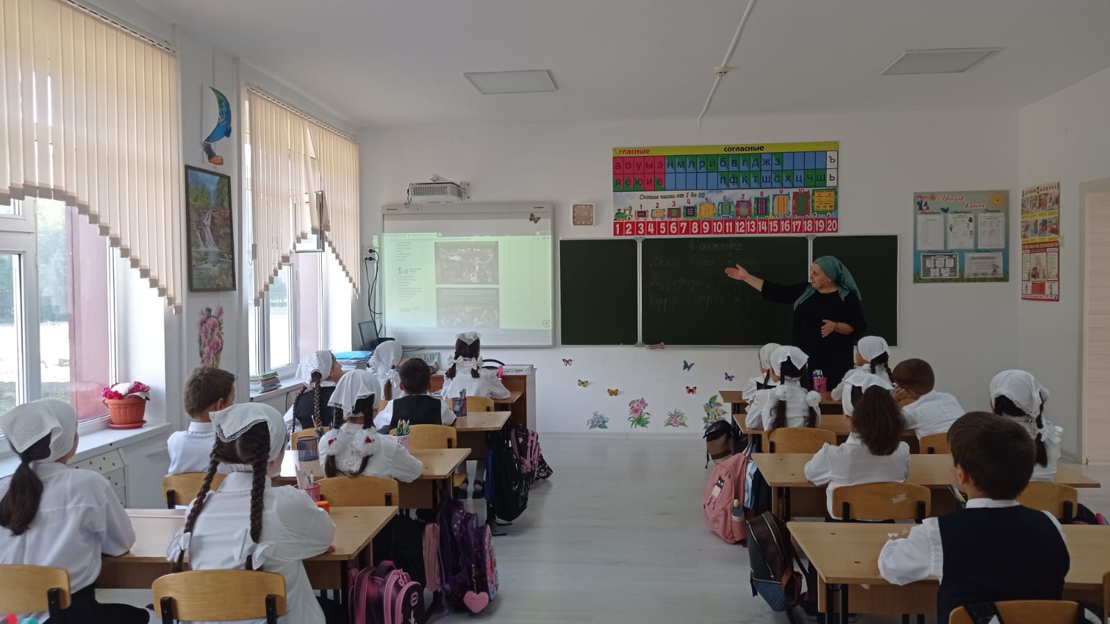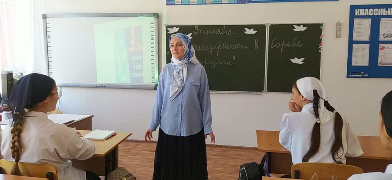 В МБОУ «Ца-Веденская СОШ №1» 04.09.2023 г. провели классные часы, на тему «3 сенября - День памяти детей Беслана»