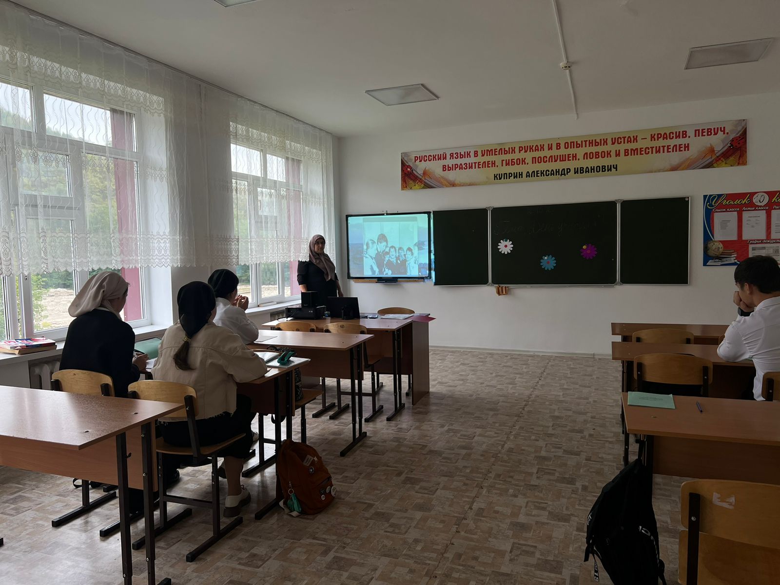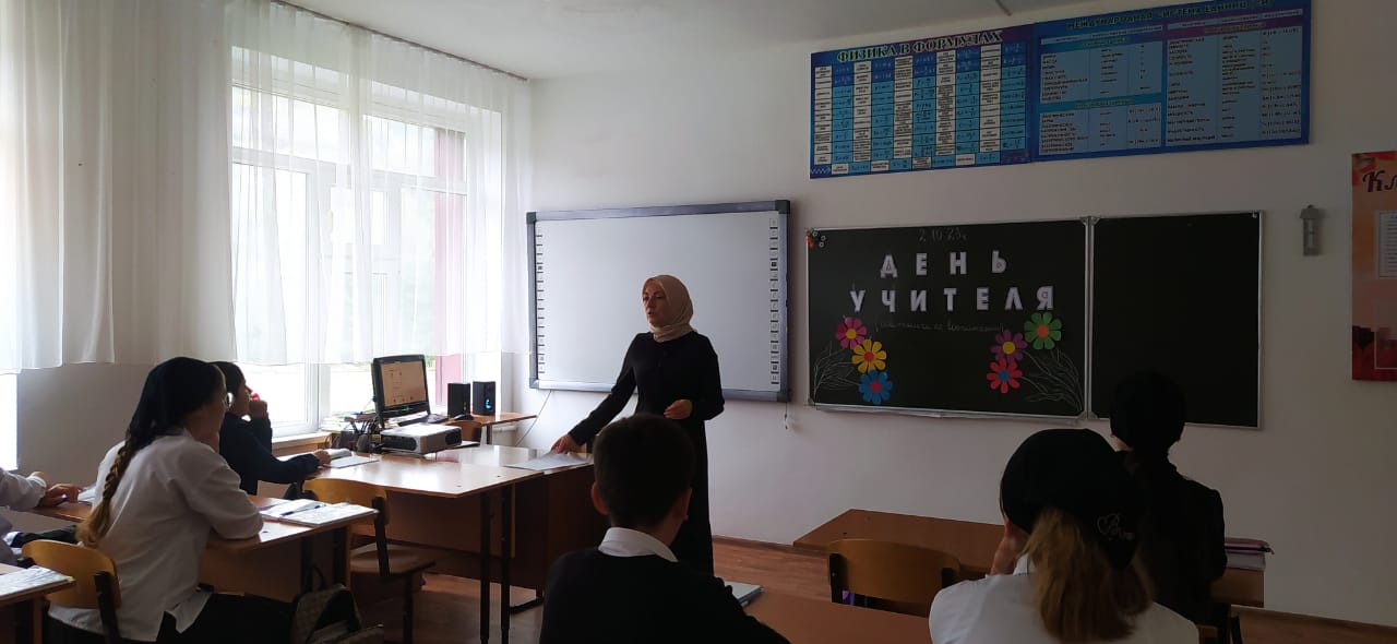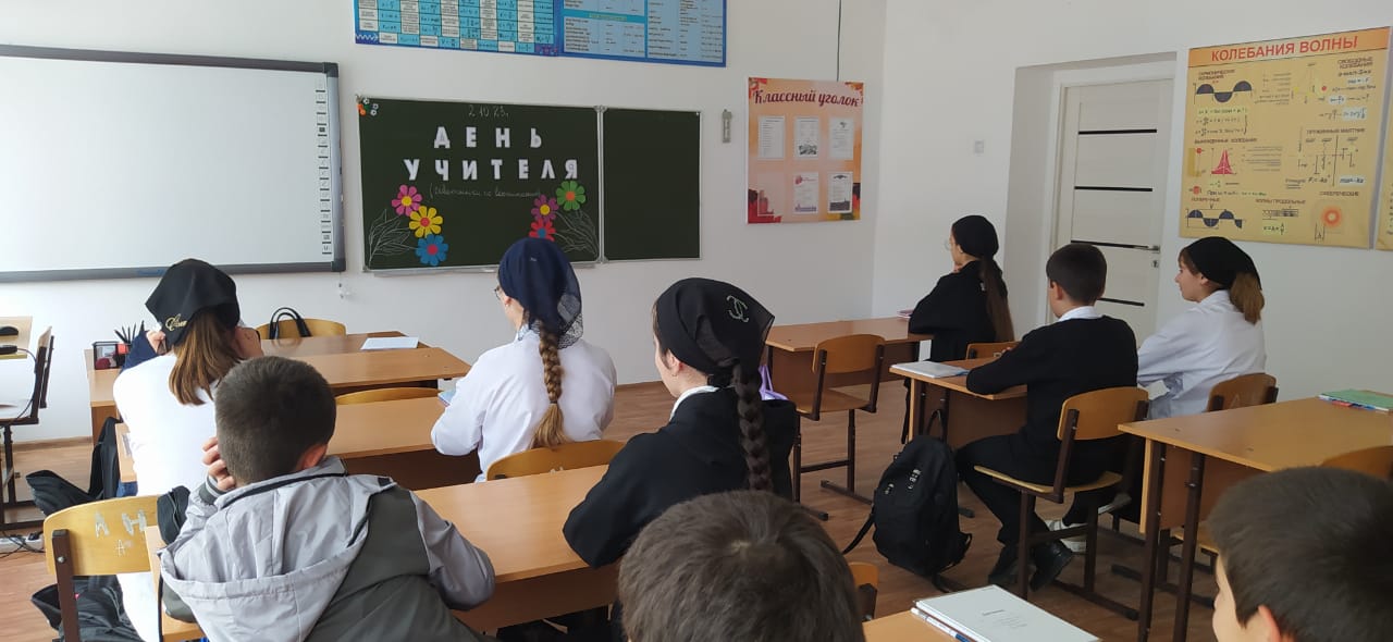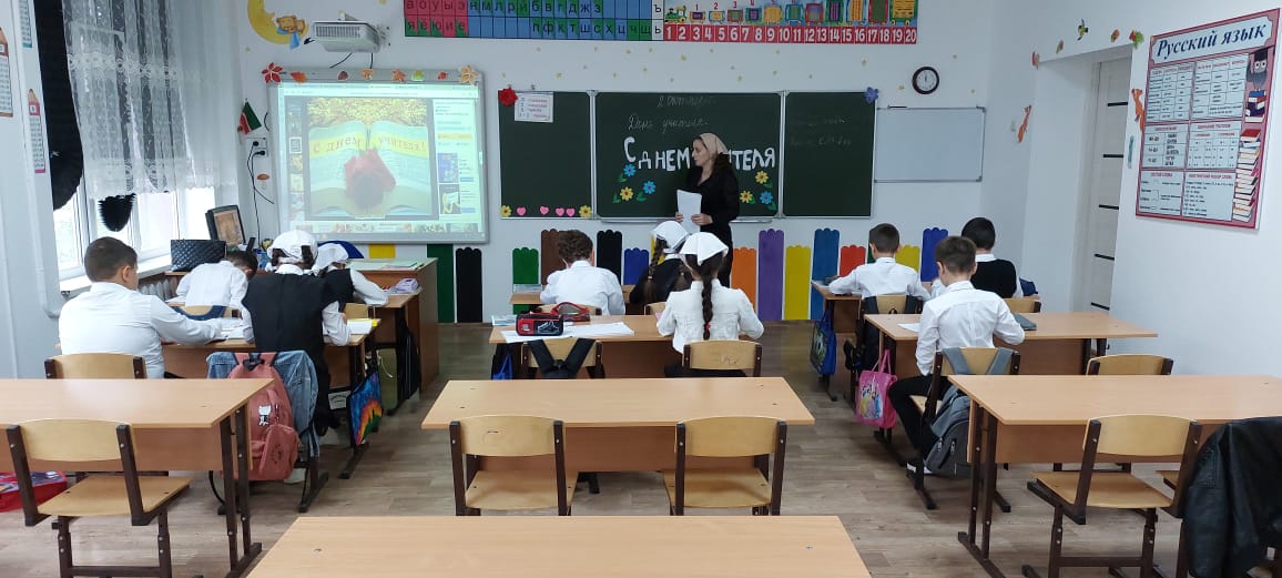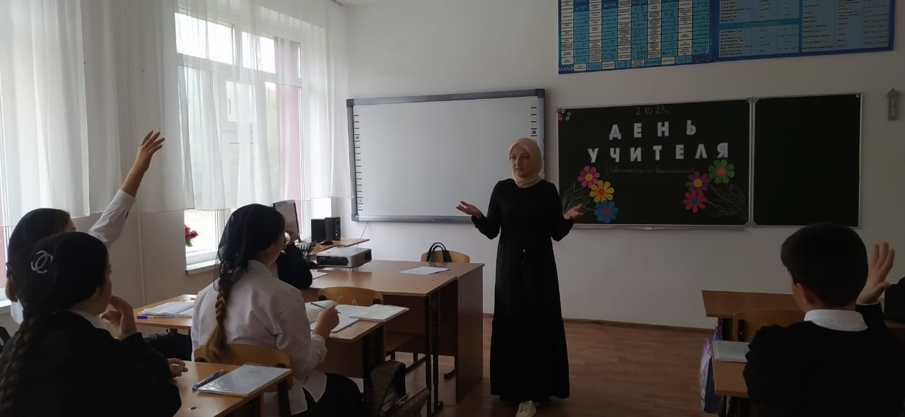 В МБОУ «Ца-Веденская СОШ №1» Поговорили о роли учителя в становлении личности.Этот урок приурочен к дню учителя,который ежегодно отмечают в стране 5 октября
