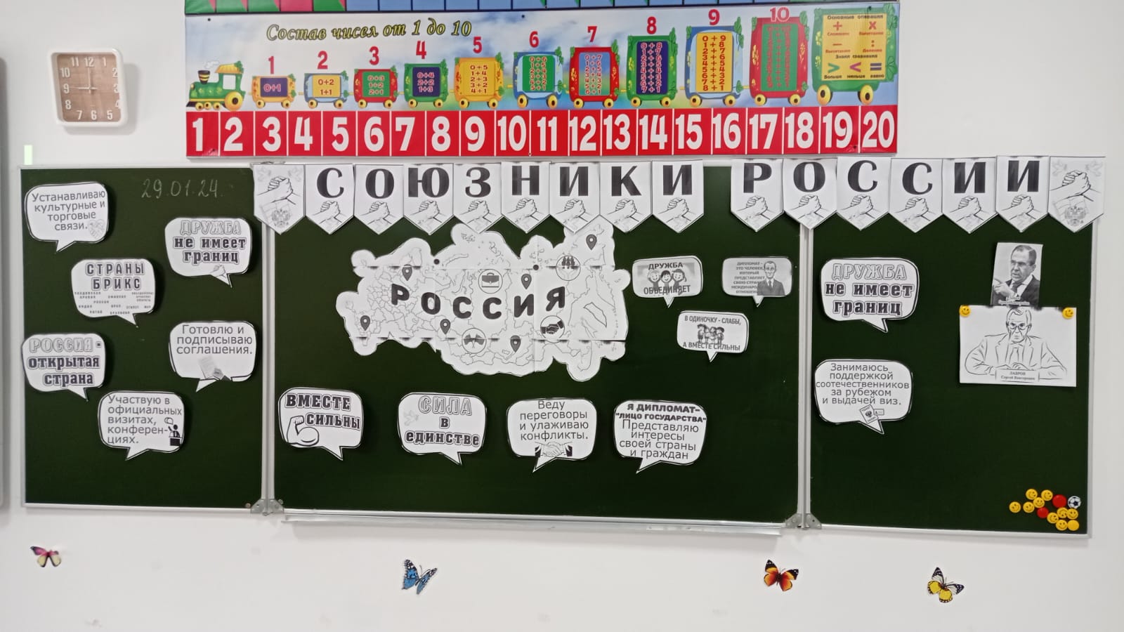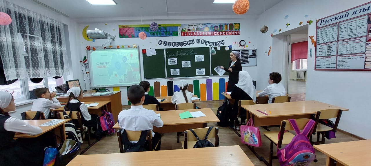 29 января в МБОУ «Ца-Веденская СОШ 1» прошли внеурочные занятия из цикла «Разговоры о важном» на тему: «Союзники России».