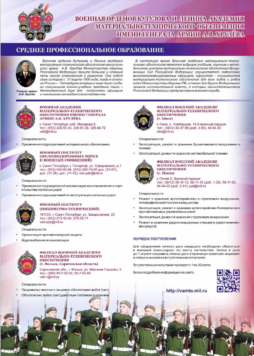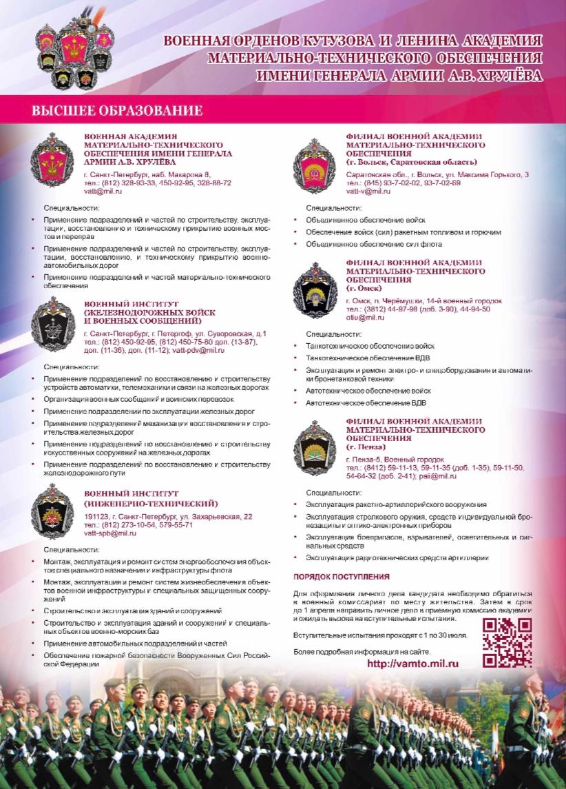 Правила приема в Военную академию материально-технического обеспечения на обучение по образовательным программам высшего (специалитет) и среднего профессионального образования в 2025 году