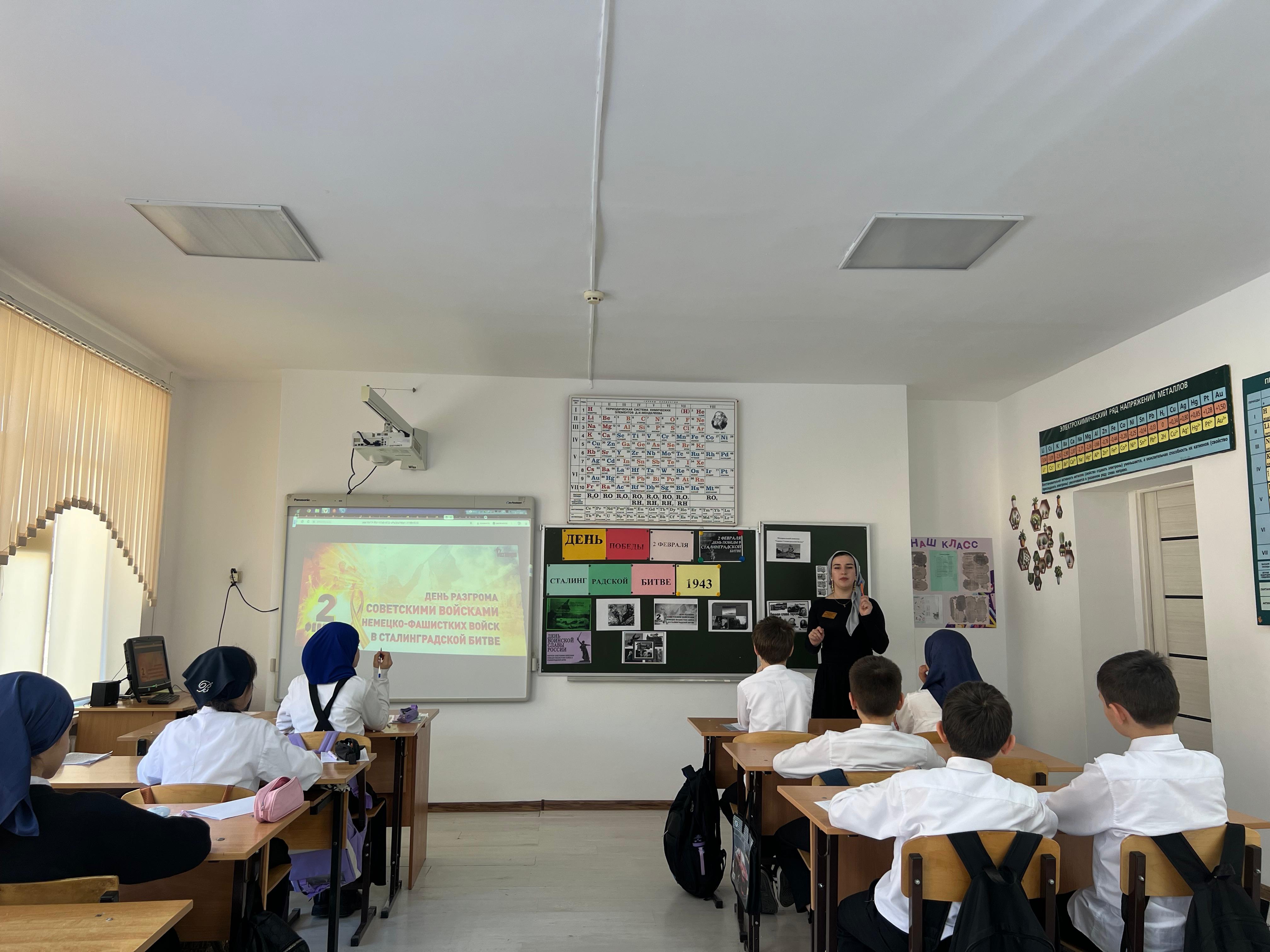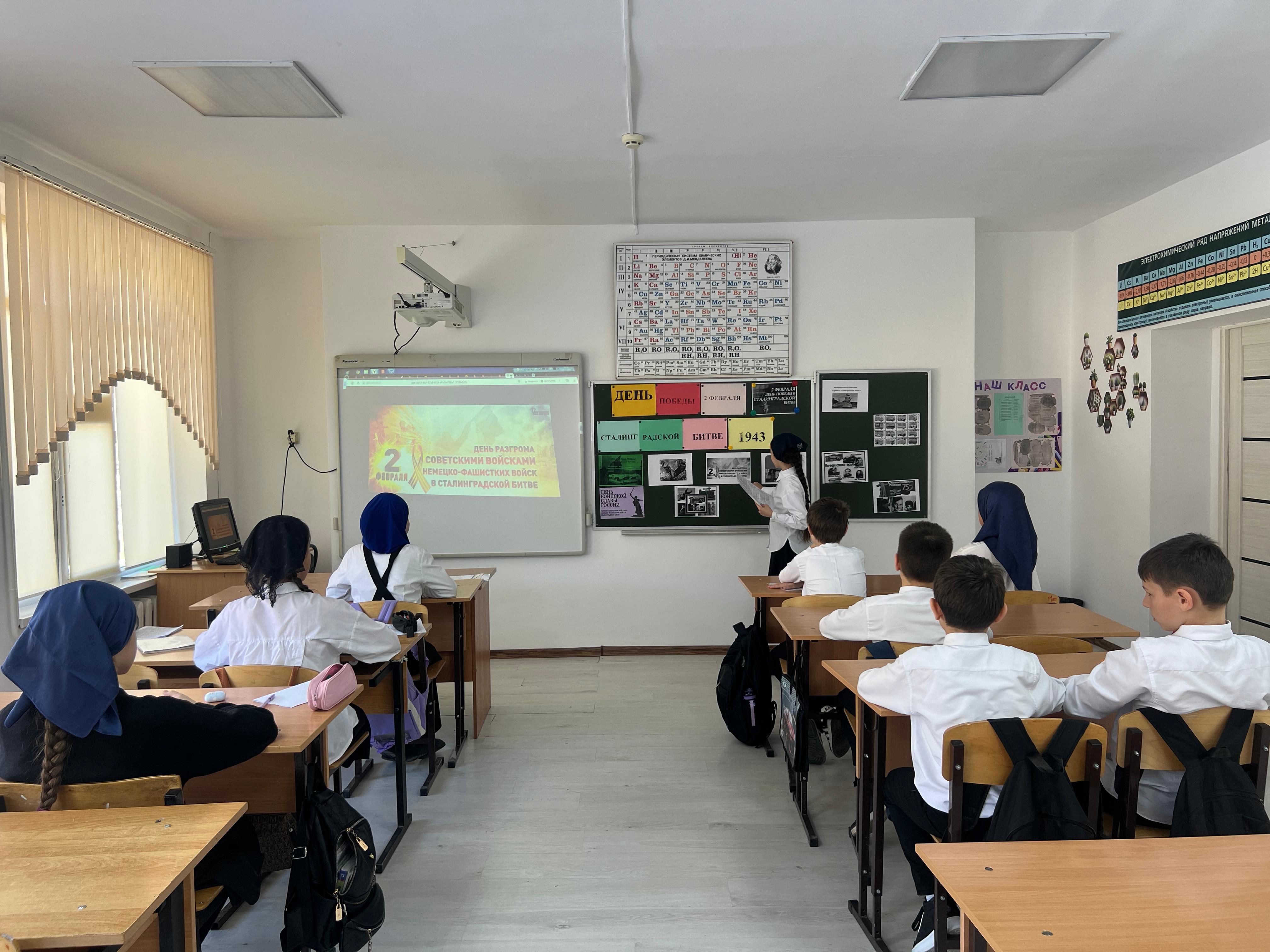 02.02.2025❄ 2 февраля отмечается День воинской славы России - День разгрома советскими войсками немецко-фашистских войск в Сталинградской битве.🗣️ Сталинградская битва – одна из самых масштабных военных операций Великой Отечественной войны. Она началась 17 июля 1942 года и закончилась 2 февраля 1943 года. 200 героических дней обороны города вошли в историю, как самые кровопролитные. При обороне города погибли и были ранены более миллиона советских солдат и офицеров. ✍️ Именно битва под Сталинградом внесла решающий вклад в достижение коренного перелома в Великой Отечественной войне: немецкая армия дрогнула и полностью потеряла стратегическую инициативу. После окружения и разгрома 6-й армии Паулюса стало окончательно ясно, что Великая Отечественная война закончится полной и безоговорочной победой Советского Союза.❄под руководством советника директора по воспитанию Индербаевой А.М. прошел Урок мужества, посвященный Сталинградской битве, на которых ребята узнали о ходе сражения, периодах обороны, контрнаступлении Красной Армии, героизме советских солдат, проявивших в жестоких боях самоотверженность, силу, волю, мужество. 🕯Минутой молчания школьники почтили память героев, павших в борьбе с немецко-фашистскими захватчиками.📝 В завершение мероприятия ребята отметили историческую значимость разгрома фашистских войск под Сталинградом и подчеркнули, что победа в этой битве навсегда останетсяв памяти людей!
