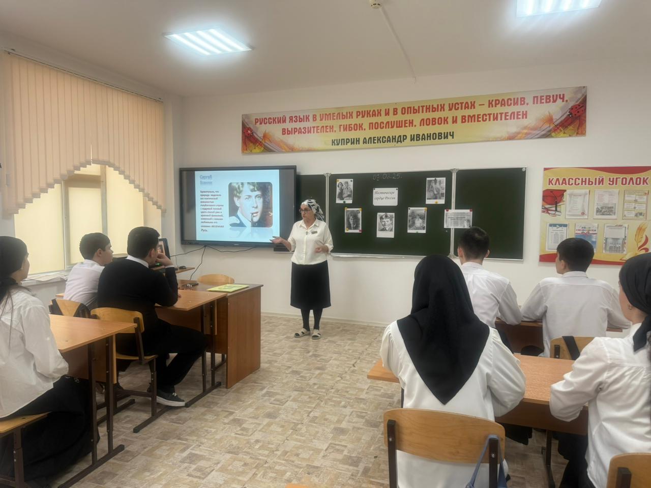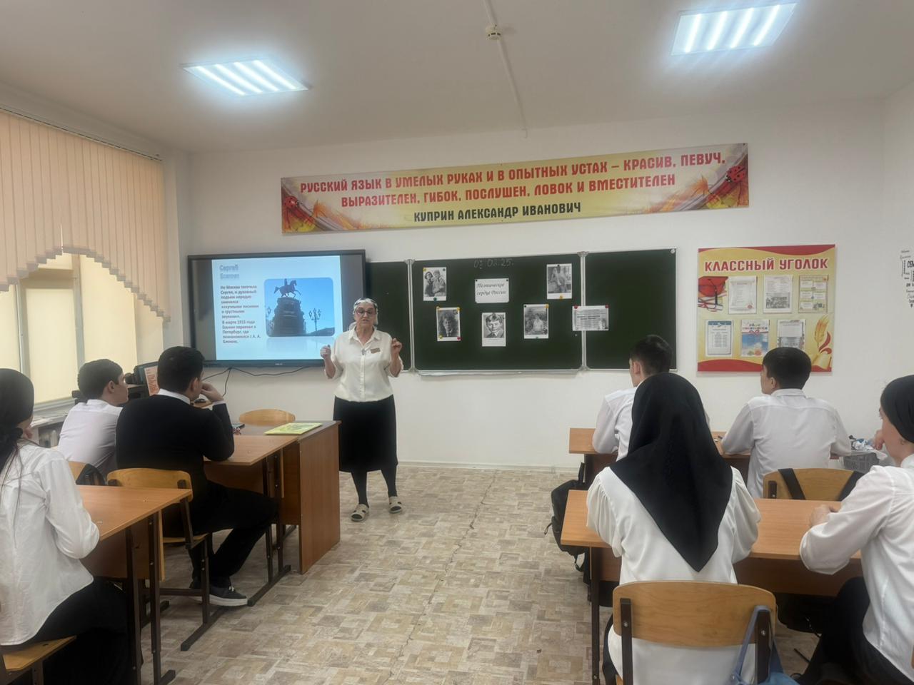 в МБОУ «Ца-Веденская СОШ 1» учитель русского языка и литературы Аласханова Татьяна Сергеевна с учащимися 9 класса провела литературный час