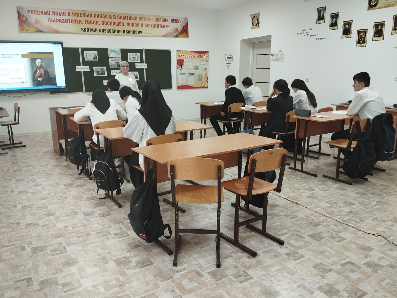 17.02.2025Учебная неделя в МБОУ «Ца-Веденская СОШ № 1 началось с торжественной церемонии установки Государственных флагов Российской Федерации и Чеченской Республики под Государственные гимны прошло очередное внеурочное занятие «Разговоры о важном». Тема: Что значит служить Отечеству? 280 лет со дня рождения Ф. Ушакова Занятие было посвящено обсуждению понятия патриотизма и значимости служения Родине. Педагоги рассказали о жизни и подвигах адмирала Федора Ушакова, выдающегося флотоводца, чья жизнь стала примером беззаветной преданности Отечеству. Ученики узнали о его блистательных победах в морских сражениях, его непоколебимой вере и милосердии. Обсудили моральные качества, необходимые для служения Родине, такие как мужество, честность, самоотверженность и любовь к своему народу. Ребята приняли активное участие в дискуссии, делились своими мыслями о том, что значит быть патриотом в современном мире. Подчеркивалось, что служение Отечеству – это не только военная служба, но и добросовестный труд, забота о близких и участие в жизни общества. Занятие завершилось выводом о том, что каждый, независимо от возраста и профессии, может внести свой вклад в процветание и защиту Родины.