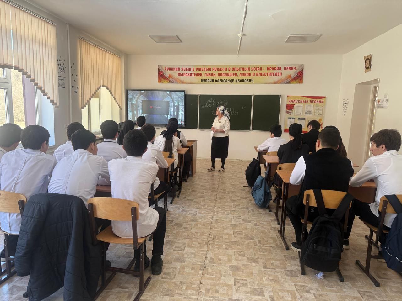 учтель русского языка и литературы Аласханова Т.С. провела единый урок на тему «Поезд Победы»