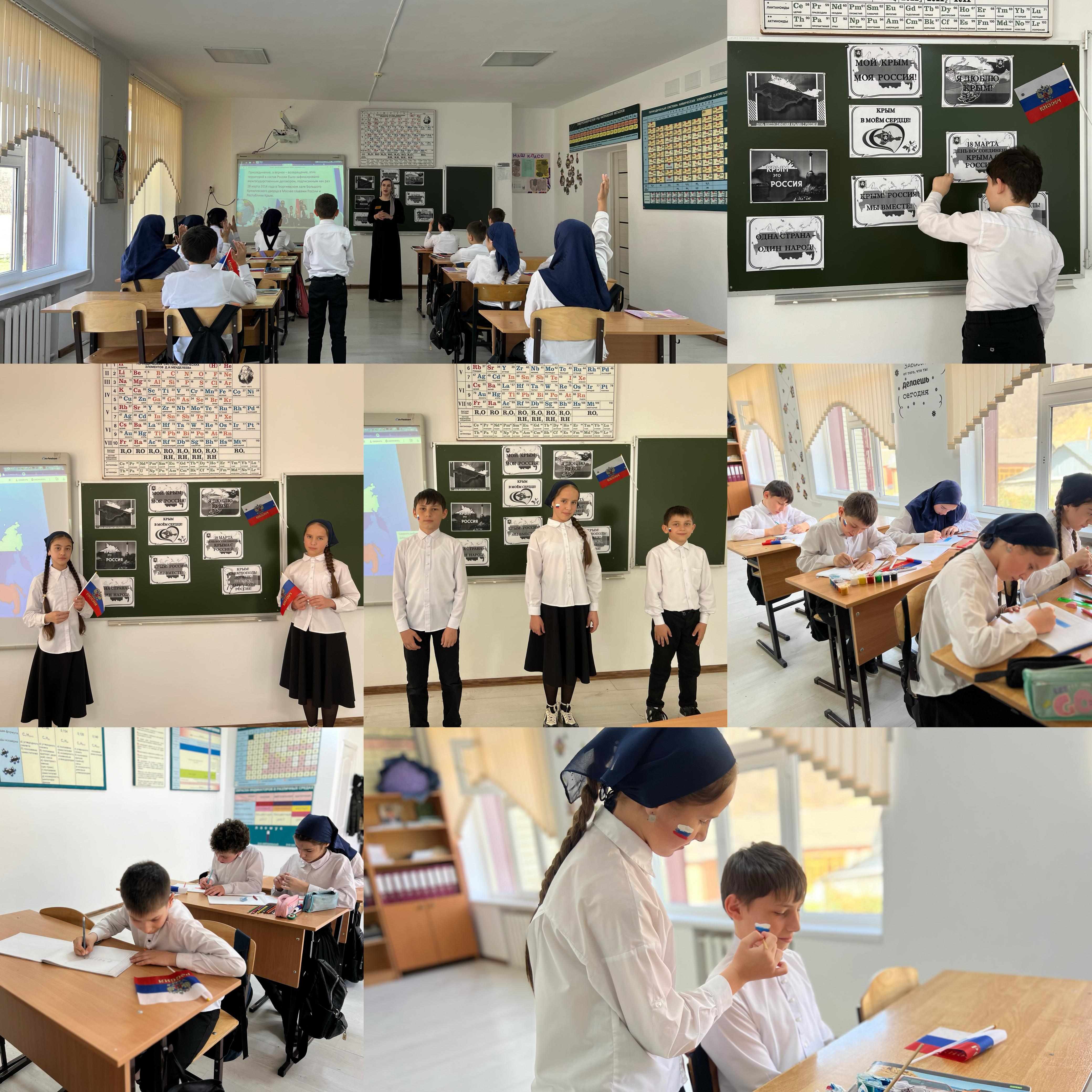 В ходе классного часа Аминат Майрсолтаевана рассказала учащимся об истории Крыма, его географическом положении и культурном значении для России. Особое внимание было уделено событиям «Крымской весны» и референдуму, на котором жители полуострова выразили желание воссоединиться с Россией.