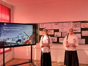 22.01.2026Урок Мужества «Подвиг твой бессмертен, Ленинград!», посвященный Дню полного освобождения Ленинграда от фашистской блокады.23.01.2026г. в МБОУ «Ца-Веденская СОШ №1» активисты первичного отделения «Движение первых» провели Урок мужества для обучающихся 6-7-х классов «Подвиг твой бессмертен, Ленинград!»Ребятам рассказали о том, как маленькие ленинградцы в блокадном городе сражались с голодом, холодом, смертью, как с первых дней войны старались помочь взрослым: вставали за станки вместо ушедших на фронт родителей, строили оборонительные укрепления, ухаживали за ранеными.Более пяти тысяч ленинградских подростков за мужество и героизм, проявленные в дни блокады были награждены медалями за оборону Ленинграда. Подвиг детей блокады учит мужеству, стойкости и безграничной любви к Родине.В ходе урока были освещены самые острые моменты, выпавшие на долю ленинградцев. О беспримерном подвиге осажденного города свидетельствуют видеохроники, продемонстрированные детям.Все присутствующие почтили минутой молчания погибших ленинградцев. Минута молчания - это не 60 секунд, а 900 блокадных дней и ночей, навсегда вошедших в историю нашей страны.