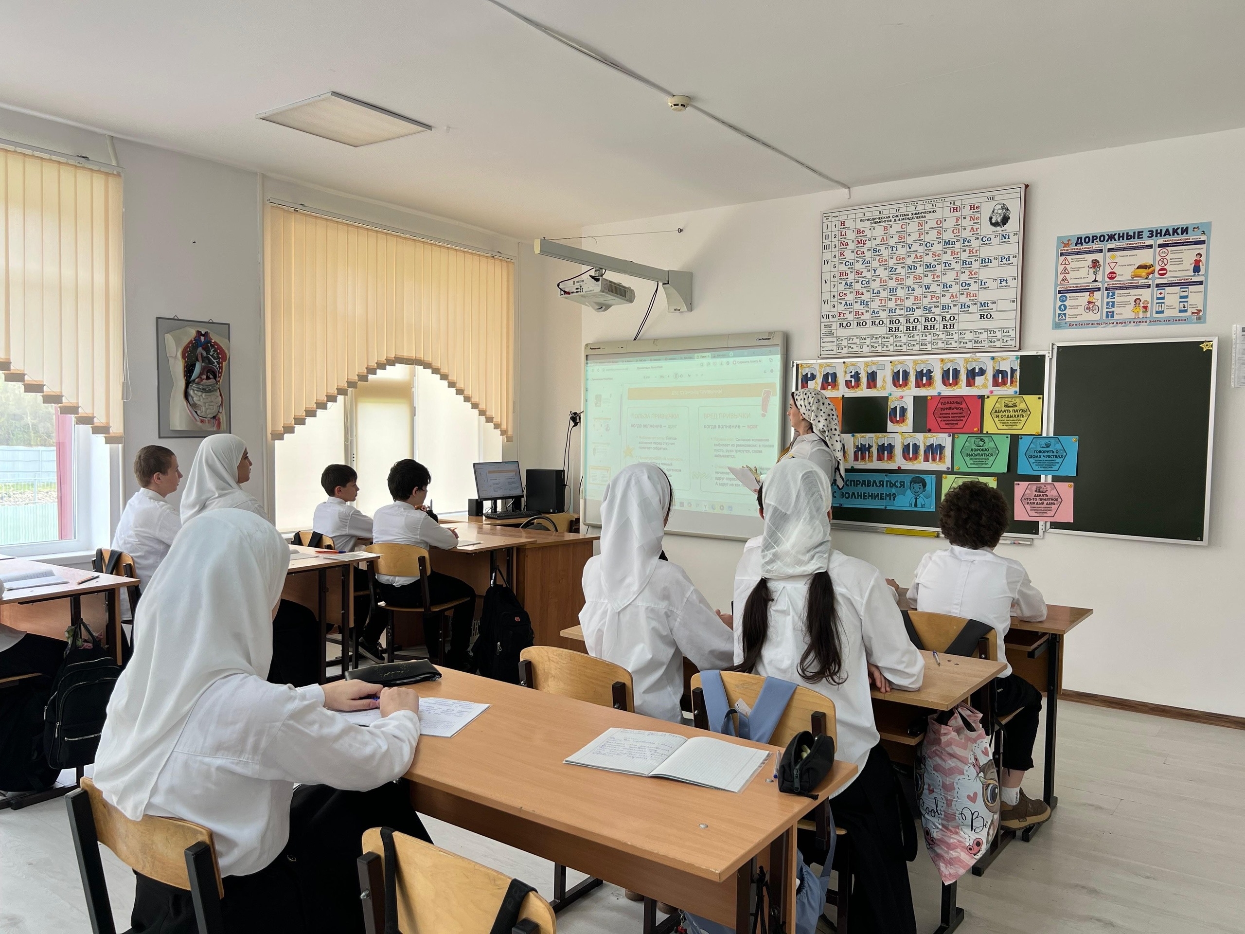 13.04.202613.04. 2026г. в МБОУ «Ца-Веденская СОШ №1» учебная неделя началась с торжественной линейки, церемонии поднятия флагов и исполнения гимнов Российской Федерации и Чеченской Республики. Сегодня в нашей школе прошло очередное внеурочное занятие из цикла «Разговоры о важном»Разговоры о важномНа этот раз занятие было посвящено одной из самых актуальных тем — «Как справляться с волнением?».В ходе классных часов ребята обсуждали, что такое волнение, почему оно возникает и как влияет на наше самочувствие и поведение. Особое внимание уделили практическим способам саморегуляции: дыхательным техникам, умению переключать внимание, поиску внутренней опоры и поддержке друг друга.Ученики выполняли интерактивные задания, анализировали жизненные ситуации, учились распознавать свои эмоции и находить эффективные способы сохранять спокойствие.Такие занятия помогают формировать у школьников эмоциональный интеллект, развивать навыки самоконтроля и уверенности в себе. Ребята отметили, что полученные знания пригодятся им не только в школе, но и в повседневной жизни.